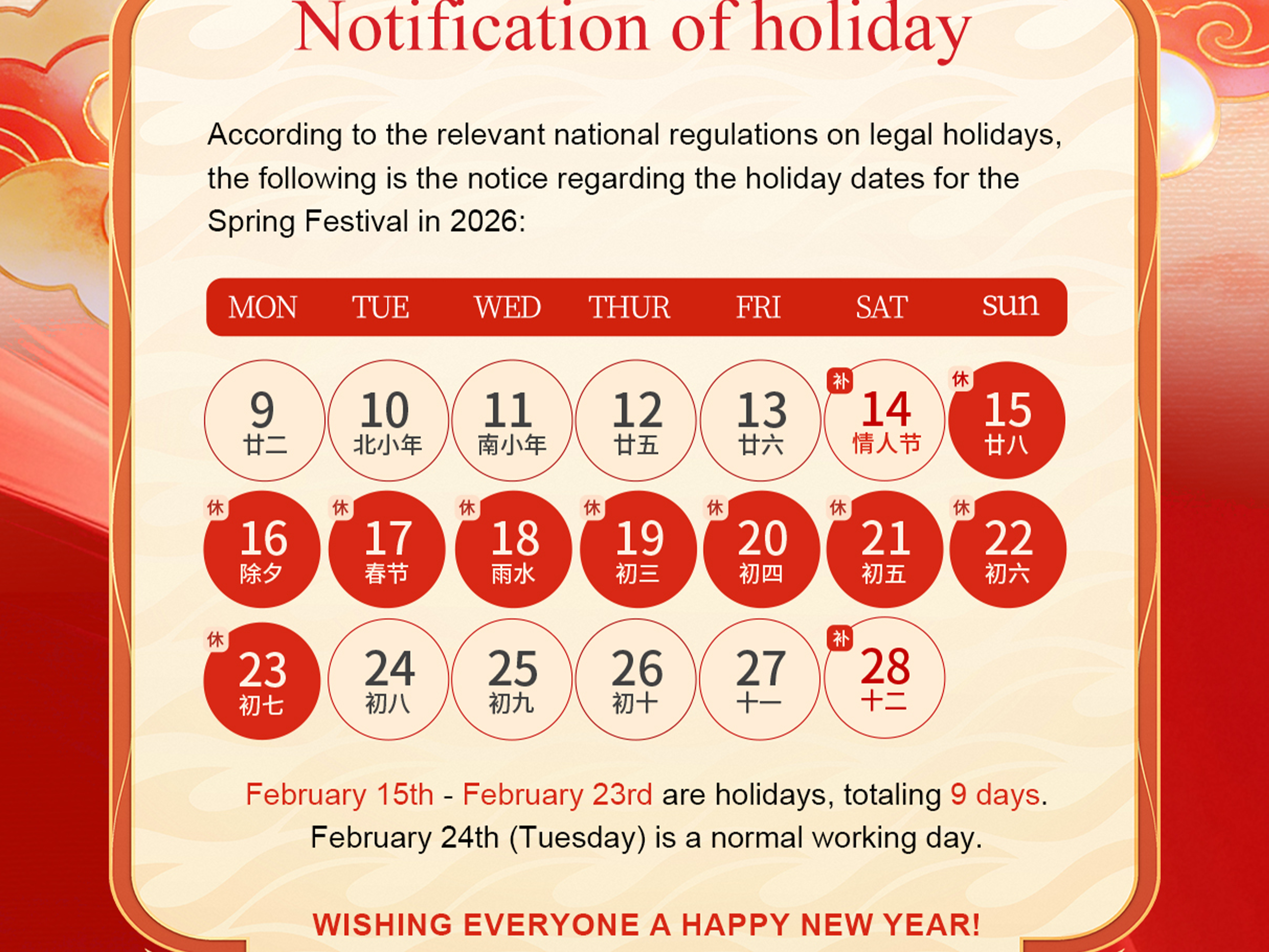 春节假期服务暂停通知